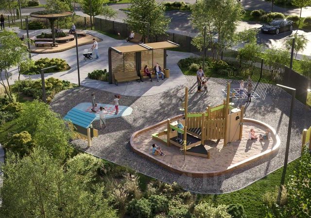 Первые этажи в зданиях комплекса жилые. Рядом с домами находится обустроенная набережная реки Сестра с прогулочными аллеями, велосипедными дорожками, зонами для физкультурных занятий, а также детские городки и открытые парковки.