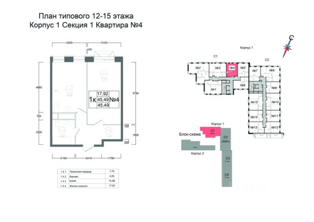 Продаётся 1-комнатная квартира в строящемся доме (Корпус 1), срок сдачи: IV-кв. 2027, общей площадью 45.49 кв.м., на 5 этаже. ЖК "Авиатор-2" - жилой комплекс с подземной автостоянкой и встроенными помещениями общественного назначения.