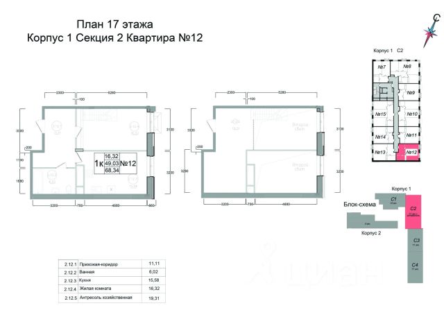 —функциональная планировка: 2 изолированные комнаты (17,6 + 12,6 кв. м. ), просторная кухня (11кв. м.) с выходом на застеклённую лоджию, раздельный санузел, прихожая. Площадь по ЕГРН — 54 кв. м. без учёта лоджии.