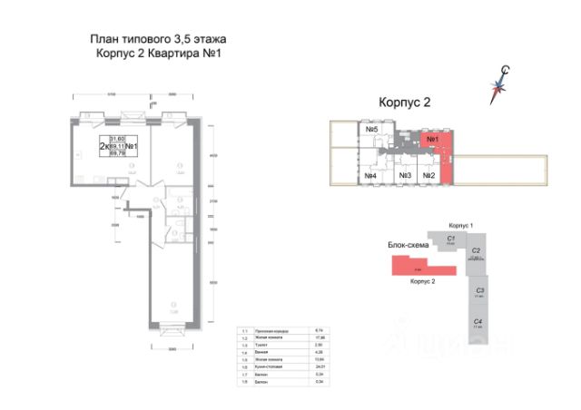 • ✅ Минимальная площадь: 61,5 м²