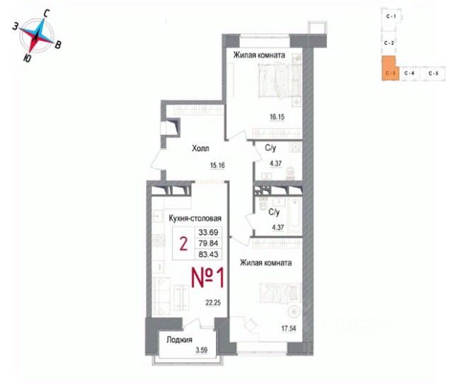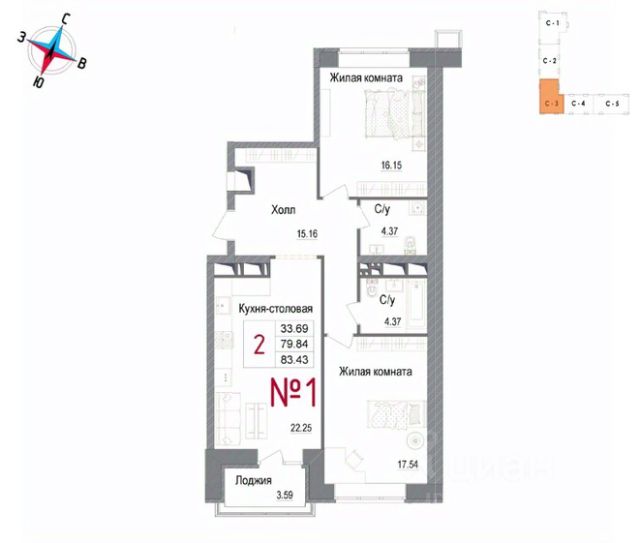 Продаётся 2-комнатная квартира в сданном доме (Корпус 1), срок сдачи: IV-кв. 2025, общей площадью 79.3 кв.м., на 2 этаже. Новый жилой комплекс "Арт" от застройщика "СИ ГК Остов" расположен по адресу: Россия, Московская область, Наро-Фоминск, улица Володарского, 10