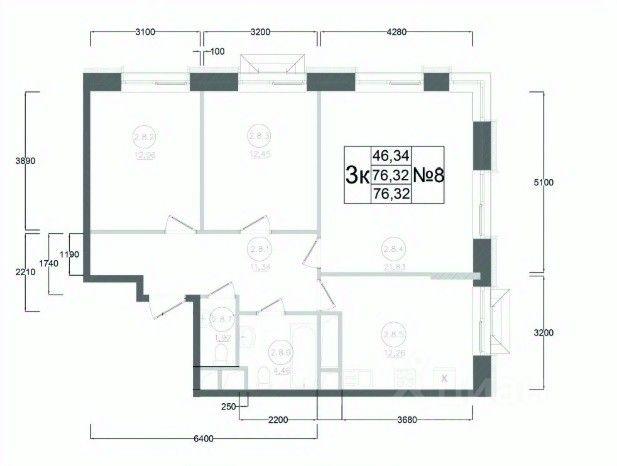 Продаётся 3-комнатная квартира в строящемся доме (Корпус 1), срок сдачи: IV-кв. 2027, общей площадью 76.32 кв.м., на 4 этаже. ЖК "Авиатор-2" - жилой комплекс с подземной автостоянкой и встроенными помещениями общественного назначения.