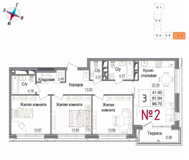 Продаётся 3-комнатная квартира в строящемся доме (Корпус 1), срок сдачи: IV-кв. 2027, общей площадью 95.6 кв.м., на 12 этаже. ЖК "Авиатор-2" - жилой комплекс с подземной автостоянкой и встроенными помещениями общественного назначения.