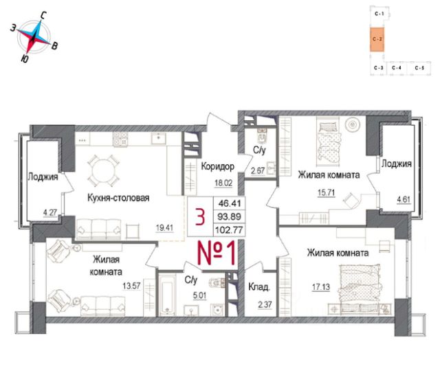 • ✅ Минимальная площадь: 68,6 м²