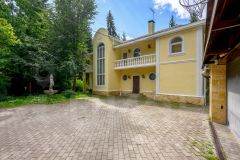 Благоустройство участка: на территории участка реализован дорогостоящий проект ландшафтного дизайна с сохранёнными вековыми хвойными деревьями. Дорожки вымощены архитектурным бетоном с имитацией среза пенька (толщина 5 см), выполнено декоративное освещение, высажены плодовые деревья и кустарники, в том числе яблони, смородина. Ландшафт украшают малые архитектурные формы. Точка притяжения на участке собственный искусственный зарыбленный пруд размером 5026 м и глубиной 3 м. В пруду такие виды рыб как: осетр, форель, черный амур, толстолобик, сом, карп, сазан, карась, лещ, окунь, линь. В комплекс входят система аэрации для поддержания оптимального уровня кислорода, собственная скважина с подогревом воды для регулярного пополнения водоёма и скиммер, который автоматически собирает листья и другой поверхностный мусор. Также на участке есть каскад небольших прудов с кувшинками, ручьём и мостиком. По участку и вокруг дома проложена дренажная система.