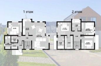2 этаж: 3 спальни, санузел, холл, лоджия.