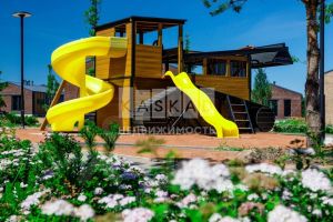 Благоустройство участка: выполнен ландшафтное озеленение, высажены хвойные и лиственные крупномеры, кустарники и растения. Под окнами мастер спальни сооружена высокая грядка розарий из кортена. Уложен рулонный газон, проложены дорожки из натуральных слэбов шунгита. Весь посадочный материал куплен в Imperial Garden.