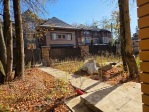 Тип участка: с лесными деревьями (березы, ели, сосны всего более 30 деревьев) и ландшафтным дизайном и геопластикой. Выполнены подпорные стенки из габиона. Визуально нивелирован диагональный уклон 3.5м.