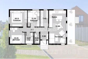 Дом состоит из двух строений разделенных стеклянным коридором, в одной части дома "малой" расположены все технические помещения включая кухню, в "большом доме" расположены все жилые зоны для максимальной комфортности проживания.