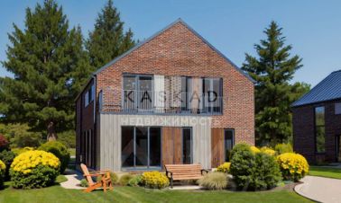 Дом выполнен в стиле гибридный канадский деревянный дом Шале.