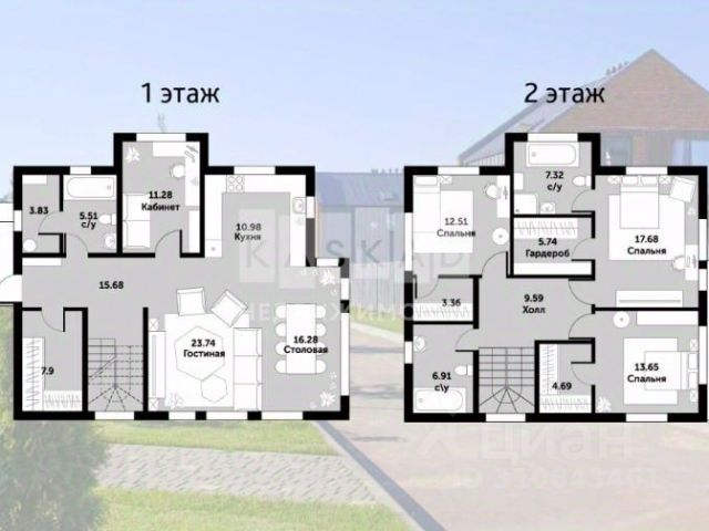 2 Этаж: холл, три просторные спальни (21 кв.м, 16 кв.м, 16 кв.м), кабинет (20кв.м), гардеробная, большой с/у (10 кв.м)