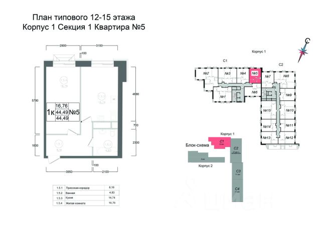 • ✅ Минимальная площадь: 44,5 м²