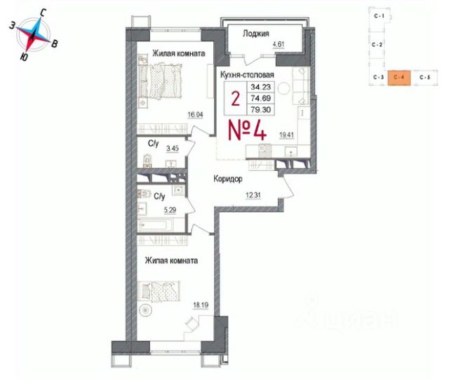 Просторная комната 17 кв.м., кухня 11 кв.м., совмещенный с/у 4,3 кв.м., большая застекленная лоджия. Материал дома монолит-кирпич!