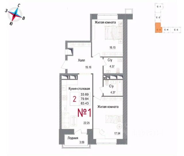 Продаётся 3-комнатная квартира в строящемся доме (Корпус 1), срок сдачи: IV-кв. 2027, общей площадью 77.34 кв.м., на 3 этаже. ЖК "Авиатор-2" - жилой комплекс с подземной автостоянкой и встроенными помещениями общественного назначения.