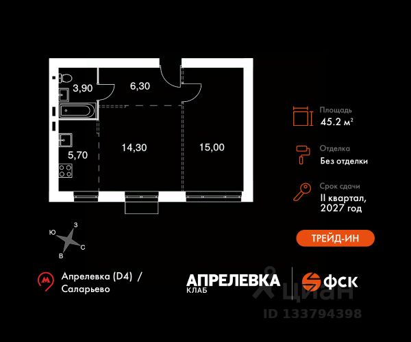 Прямая продажа от застройщика! Загородный жилой комплекс класса Комфорт Плюс. Продаётся 4-к квартира номер 83 общей площадью 81 кв.м на 4-м этаже 5 этажного дома. Без отделки. Особенности: - Квартира доступна к покупке в Trade-In. - Распашная планировка - отличное сочетание удобства и свободы. Квартира без отделки. Чистый холст для воплощения интерьера вашей мечты. Расположение комплекса: "Апрелевка Клаб" - это жилой комплекс всего в 30 км от Москвы по Киевскому шоссе, где городские удобства гармонично сочетаются с природой. Здесь начинается новая ступень жизни: современная малоэтажная застройка не нарушает живописные виды, а закрытая территория дарит чувство безопасности. Особенности проекта: - Улучшенная отделка МОПов - Социальная инфраструктура в шаговой доступности: муниципальные детский сад и школа, поликлиника - Не просто школа: школа МГИМО - Школа искусств МАРХИ - Всесезонное уникальное благоустройство: от города к природе через призму искусства - Комфортное пространство (спорт, досуг с детьми, работа в удаленном формате с прекрасными видами, место для творчества, тихие места для уединения и размышления) - Отличная транспортная доступность Транспортная доступность: - Метро Филатов Луг и Рассказовка - 25 км - МЦД Апрелевка - 5 км - МКАД — 30 км - Садовое кольцо — 45 км - Метро в Троицке (открытие в 2030) — 22 км - Ближайшая остановка общ. транспорта "Фрунзевец" - 550 м - Ст. м. "Саларьево" - 30 мин. на автобусе Внутренняя инфраструктура: Здесь есть хобби на любой вкус, возраст и сезон. Велосипедные, беговые и прогулочные маршруты, уличный workout, летний амфитеатр, спортивная площадка, центральная площадь с сухим фонтаном и игровыми зонами. Крытые развлечения: зона коворкинга, детская комната, кафе. В жилом комплексе будет современная школа на 830 мест и детский сад на 400 мест нового формата: с просторными классами и современным оснащением согласно высоким стандартам. Также на территории будет размещена школа искусств. Дворы без машин, игровые зоны и маршруты для прогулок с навигацией минимизируют риски и создают ощущение защищенности. Вдоль южной границы комплекса протекает река Десна, создавая зону отдыха в природном окружении. Цены указаны с учетом скидки.