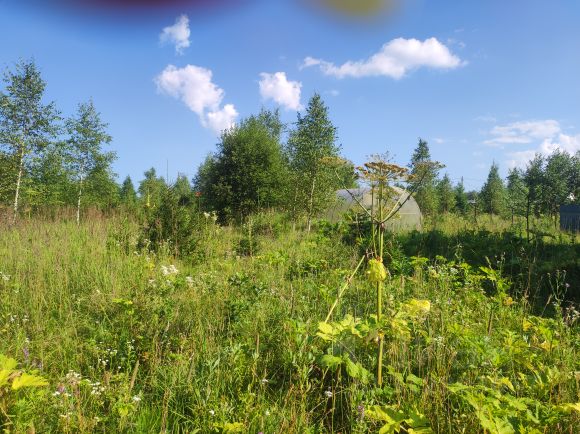 участок 12соток в деревне Орешково. 80км от МКАД направление Киевского ш. от Наро- фоминска 20км. Участок обнесен забором на участке ангар 12м.на 24м.высота 6м, навесы, парник. свет. Около участка высажены ели, березы в 4 ряда.