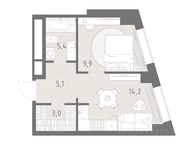 Студия · 33,3 м² · 14/28 этаж