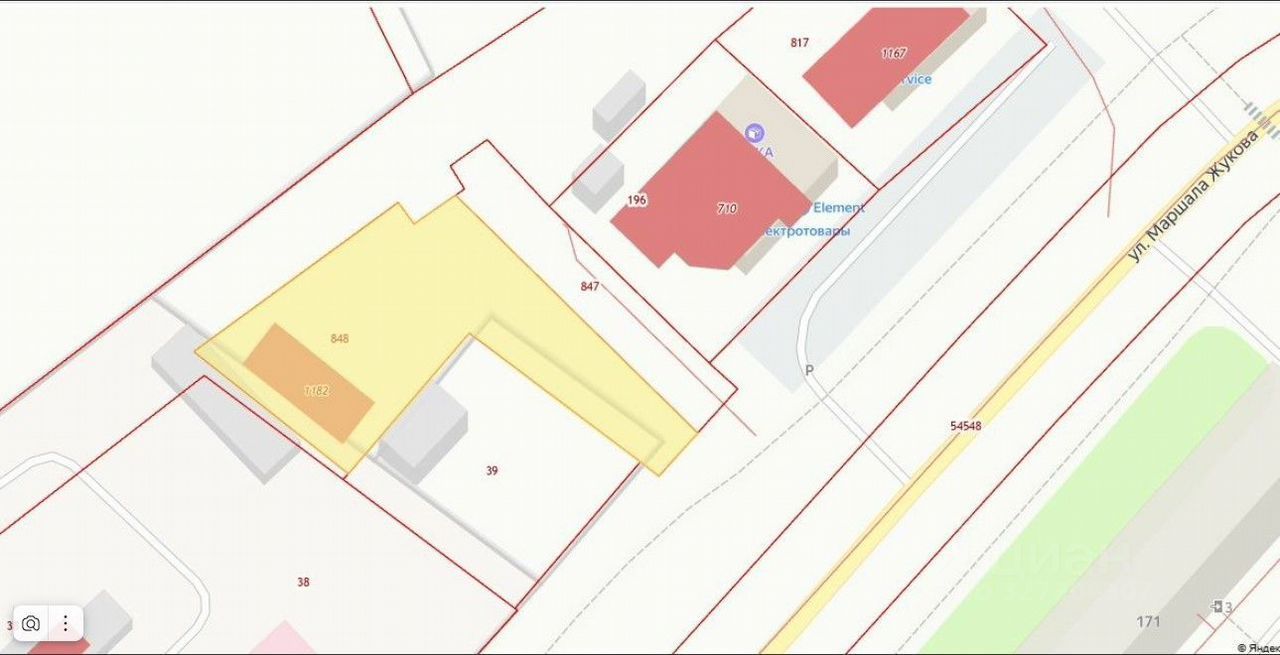 50:26:0100204:848, площадь 15 соток, (земли населенных пунктов, с видом разрешенного использования: обслуживание жилой застройки). На участке нежилое строение с адресом: ул. М. Жукова, д.166, площадью 165м2.