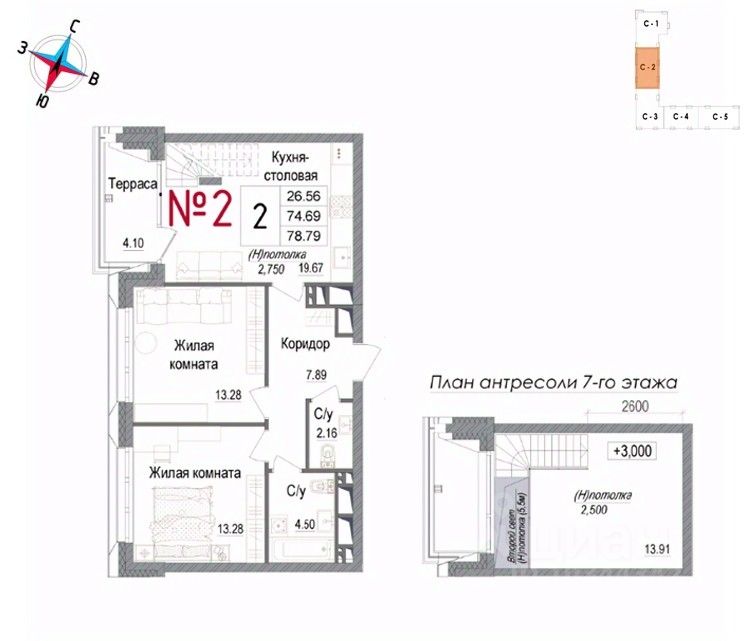 Продаётся 2-комнатная квартира в сданном доме (Корпус 1), срок сдачи: IV-кв. 2025, общей площадью 78.9 кв.м., на 7 этаже. Новый жилой комплекс "Арт" от застройщика "СИ ГК Остов" расположен по адресу: Россия, Московская область, Наро-Фоминск, улица Володарского, 10