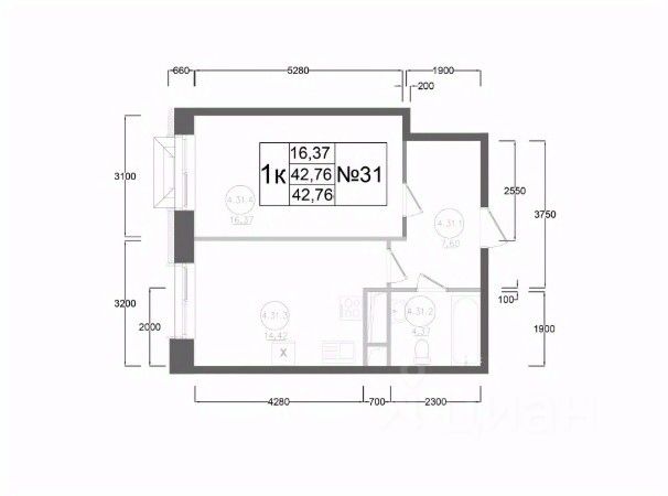 42,76 м²