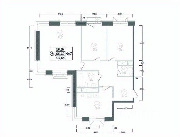 Продаётся 3-комнатная квартира в строящемся доме (Корпус 1), срок сдачи: IV-кв. 2027, общей площадью 95.94 кв.м., на 3 этаже. ЖК "Авиатор-2" - жилой комплекс с подземной автостоянкой и встроенными помещениями общественного назначения.