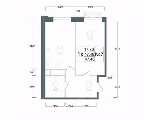 47,48 м²