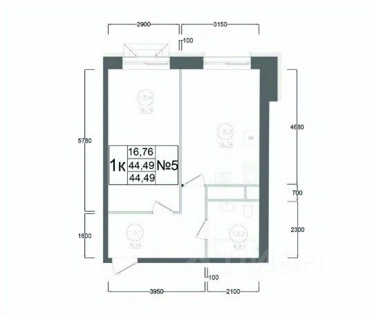44,49 м²