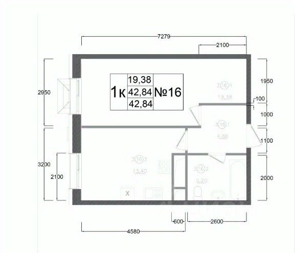 42,84 м²