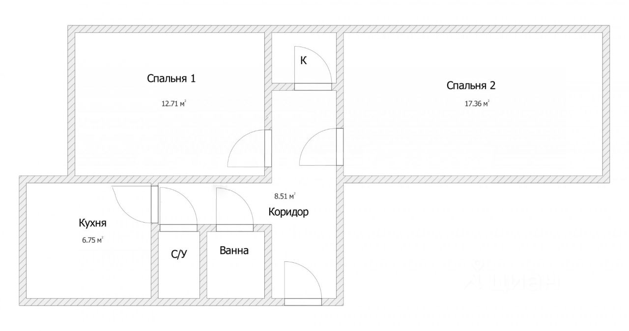 Комнаты изолированные (17,3 кв.м. и 12,7 кв.м.);