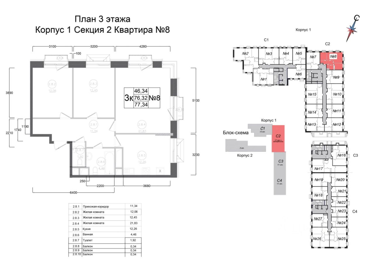 Общая площадь77,34 м²