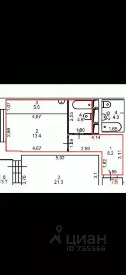 — Совместный санузел 4,6 м².