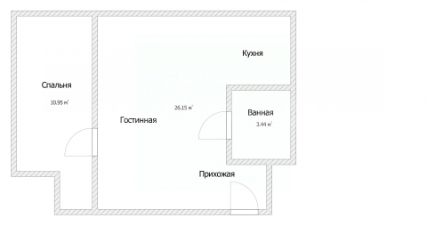 Общая площадь: 40,6 кв.м.