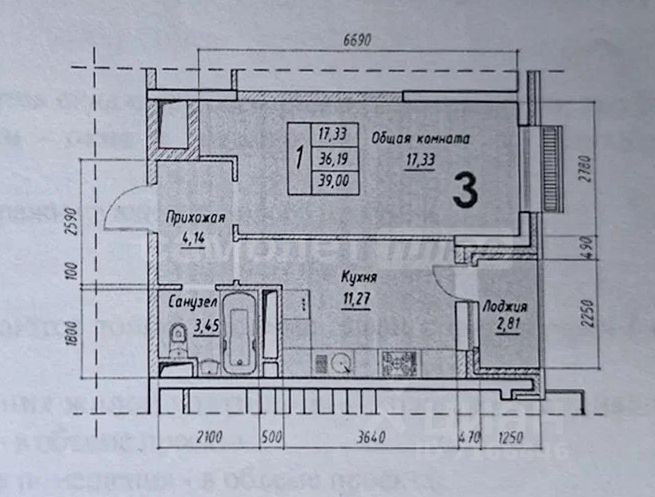 Общая площадь: 36,2 кв. м.