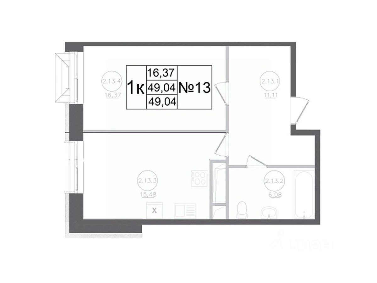 Общая площадь49,04 м²