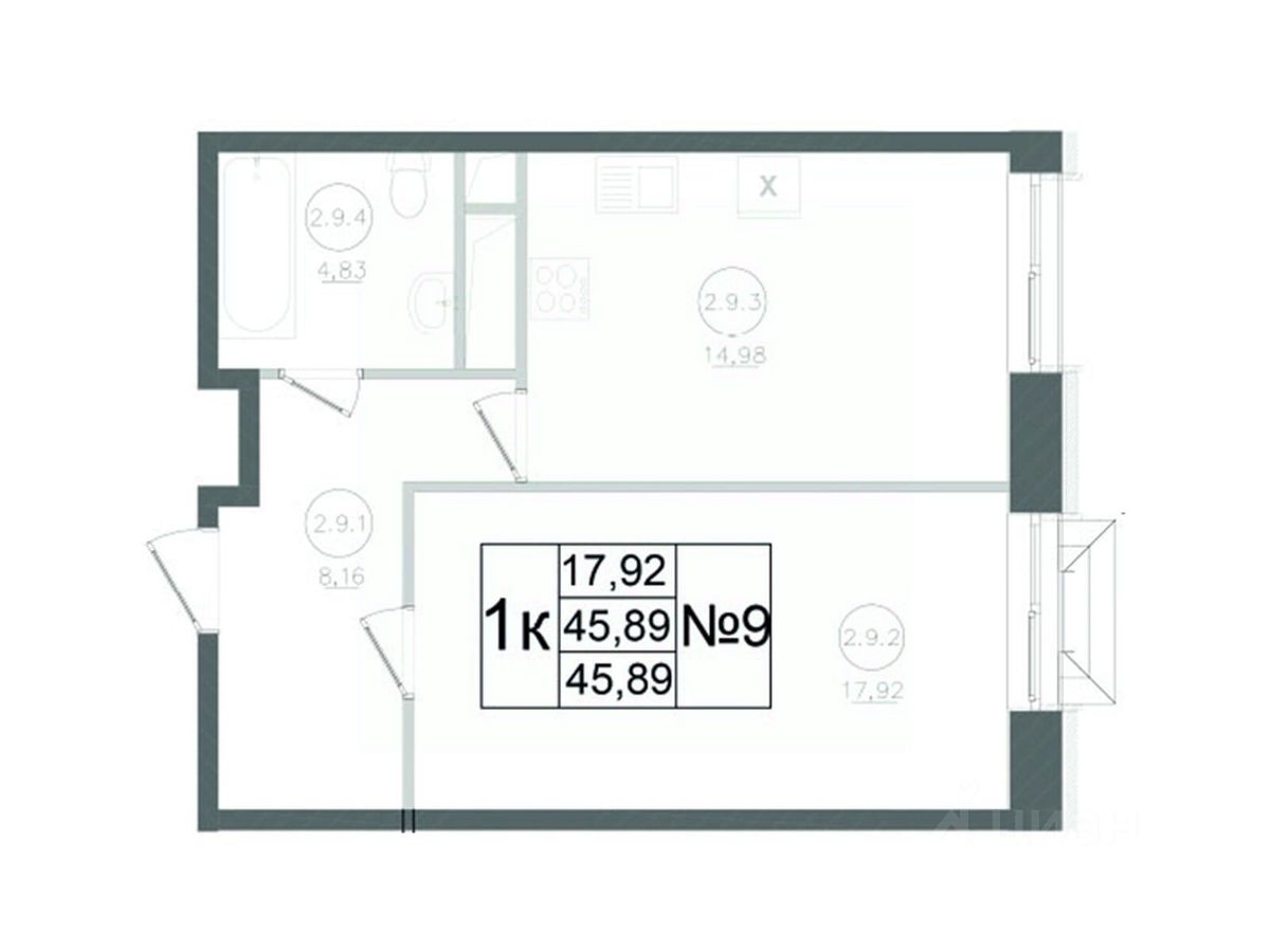 Продается 1-комн. квартира, 45,89 м²