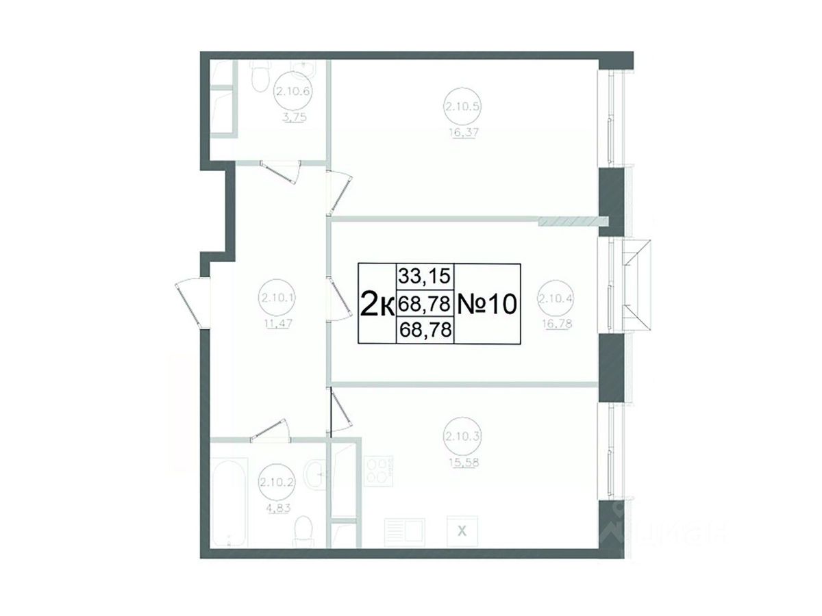 Продается 2-комн. квартира, 68,78 м²