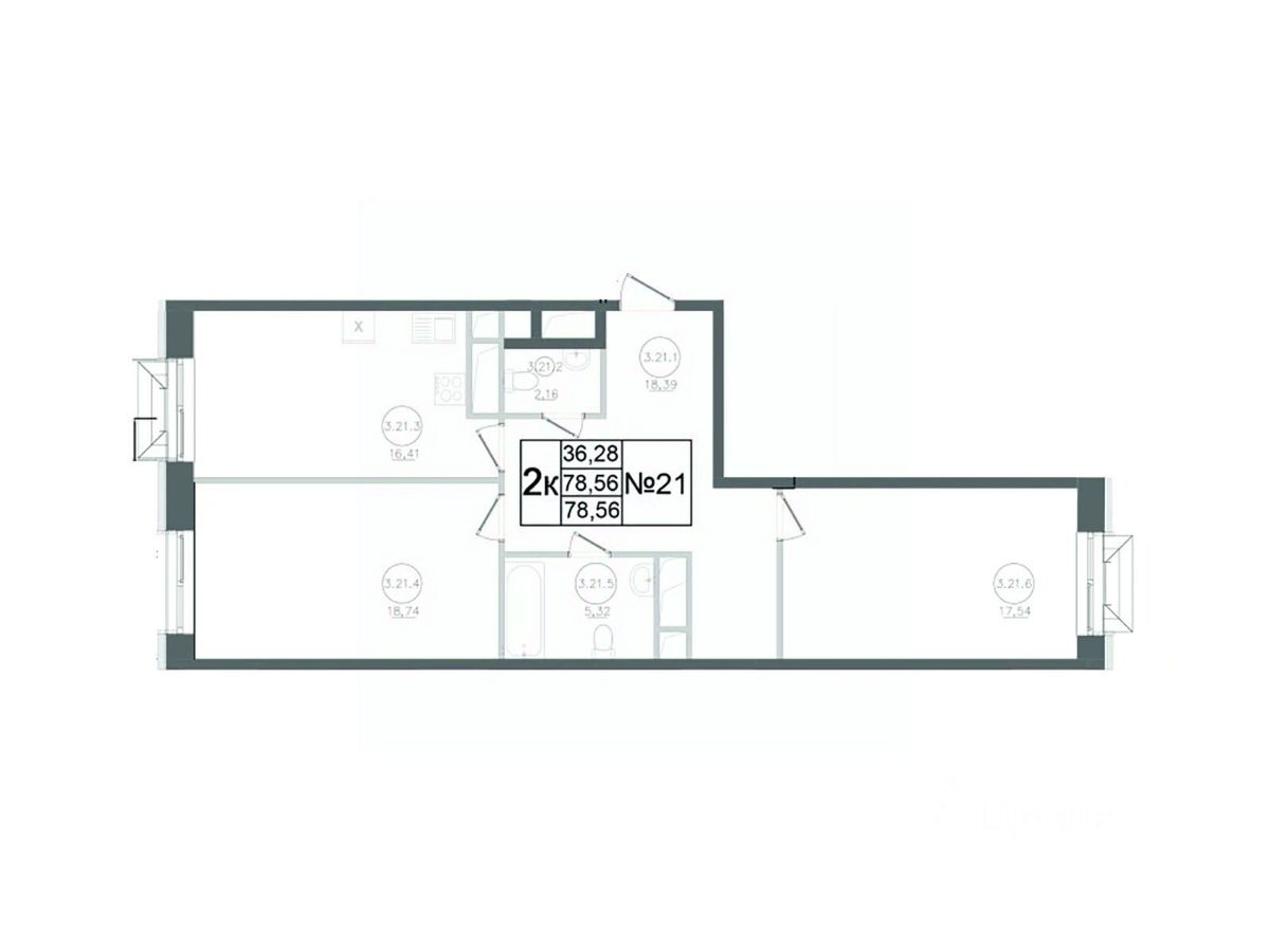 Продается 2-комн. квартира, 78,56 м²