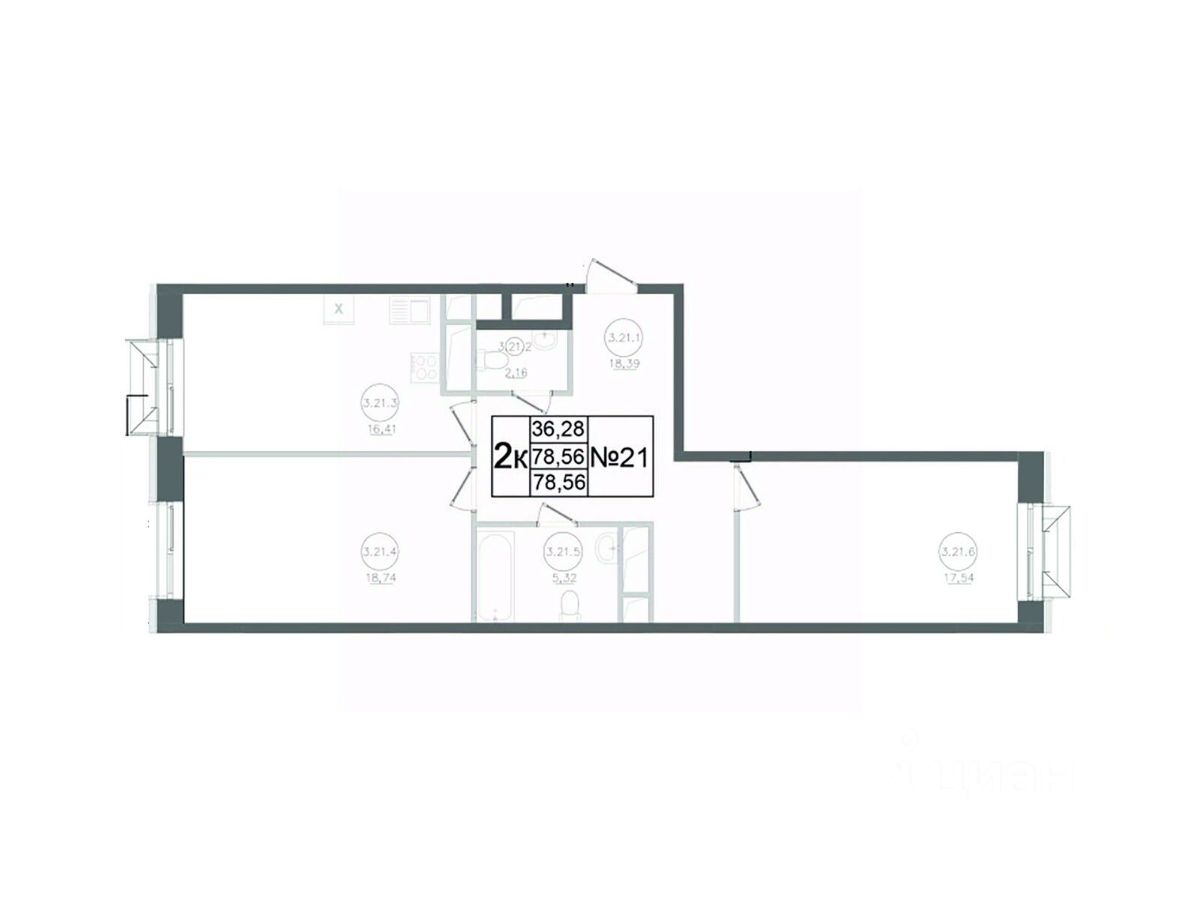 Общая площадь78,56 м²