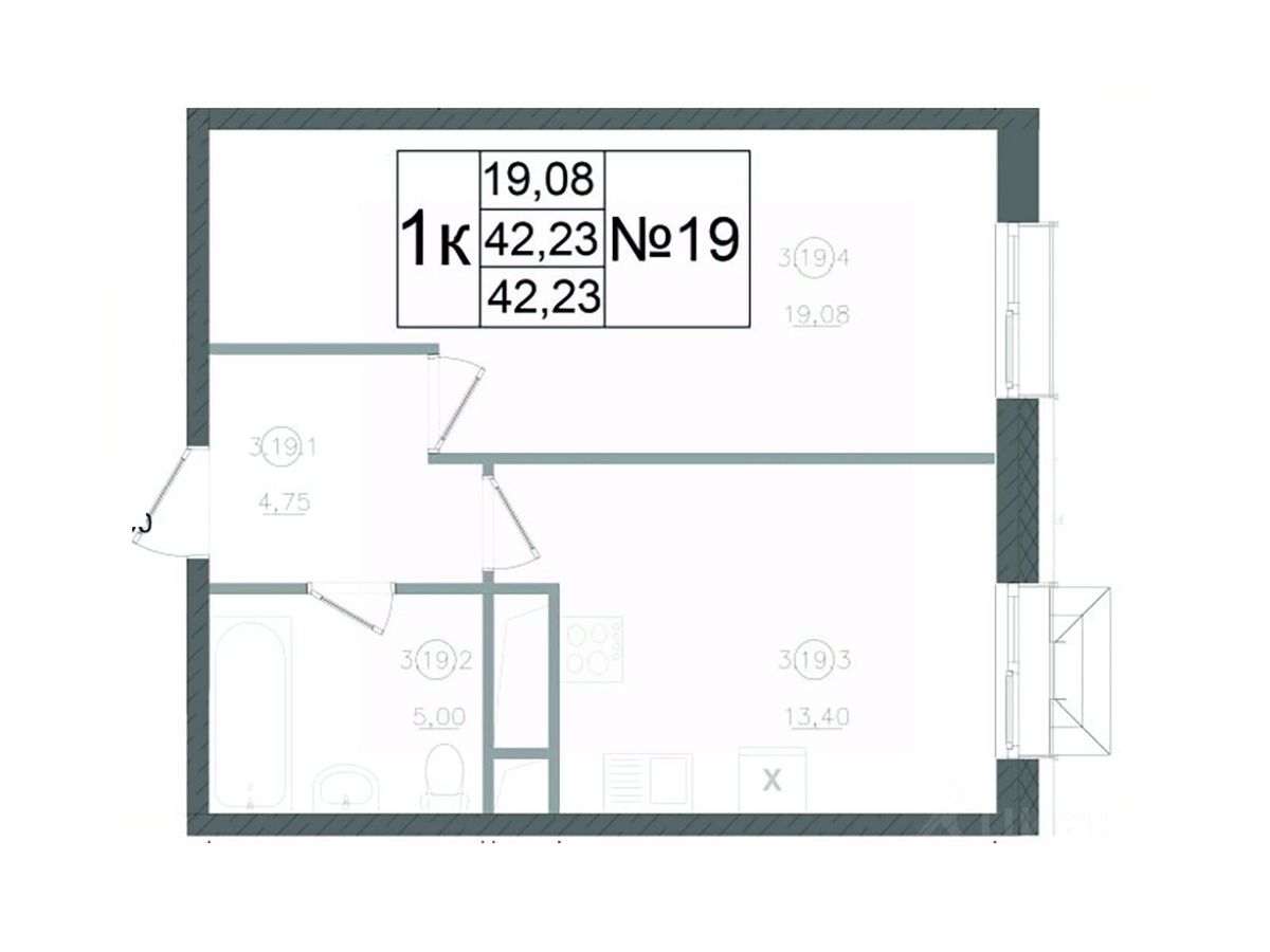 Жилая площадь19,1 м²