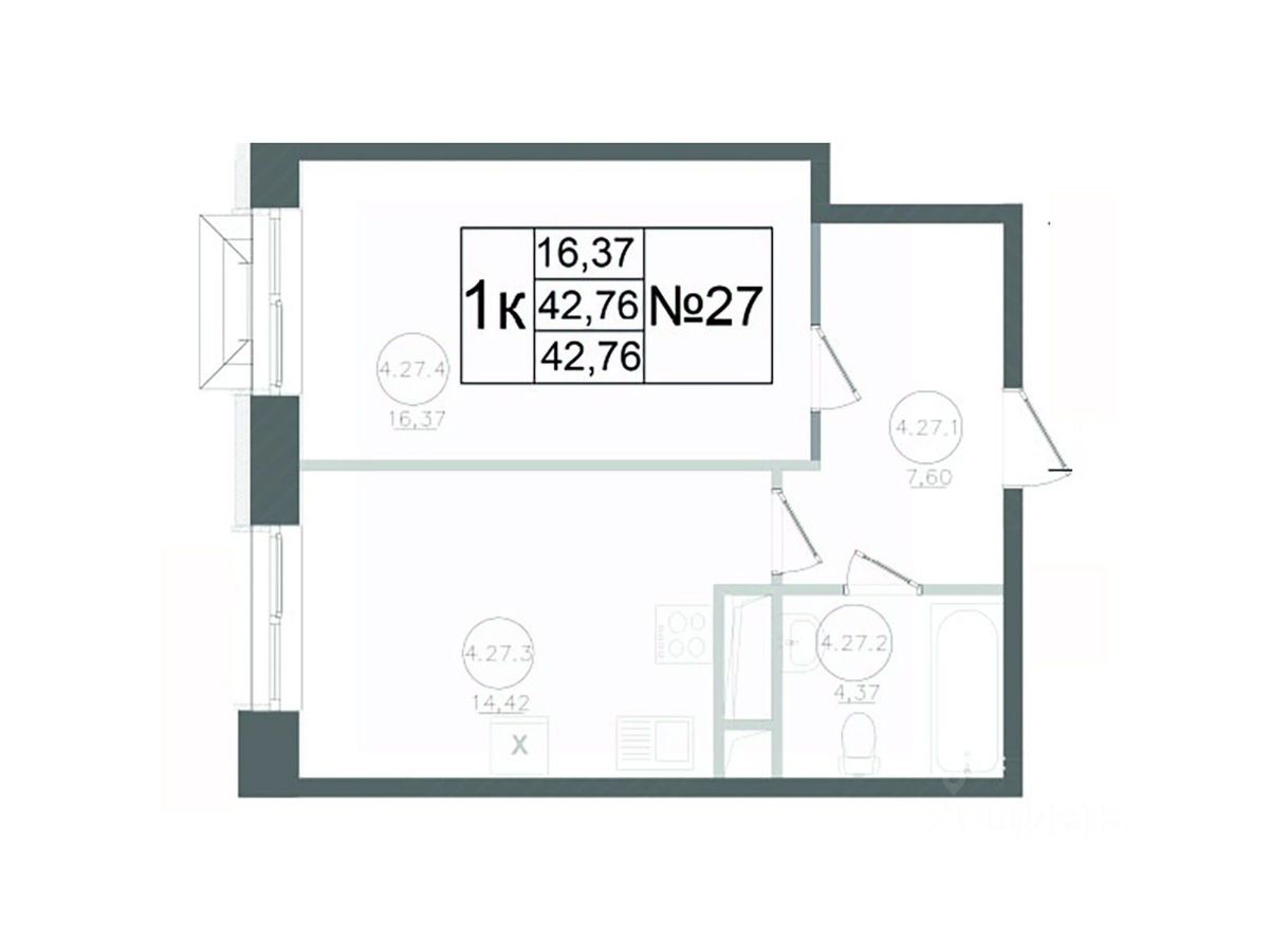 Общая площадь42,76 м²