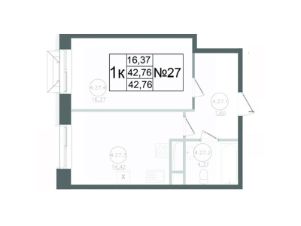 Продается 1-комн. квартира, 42,76 м²