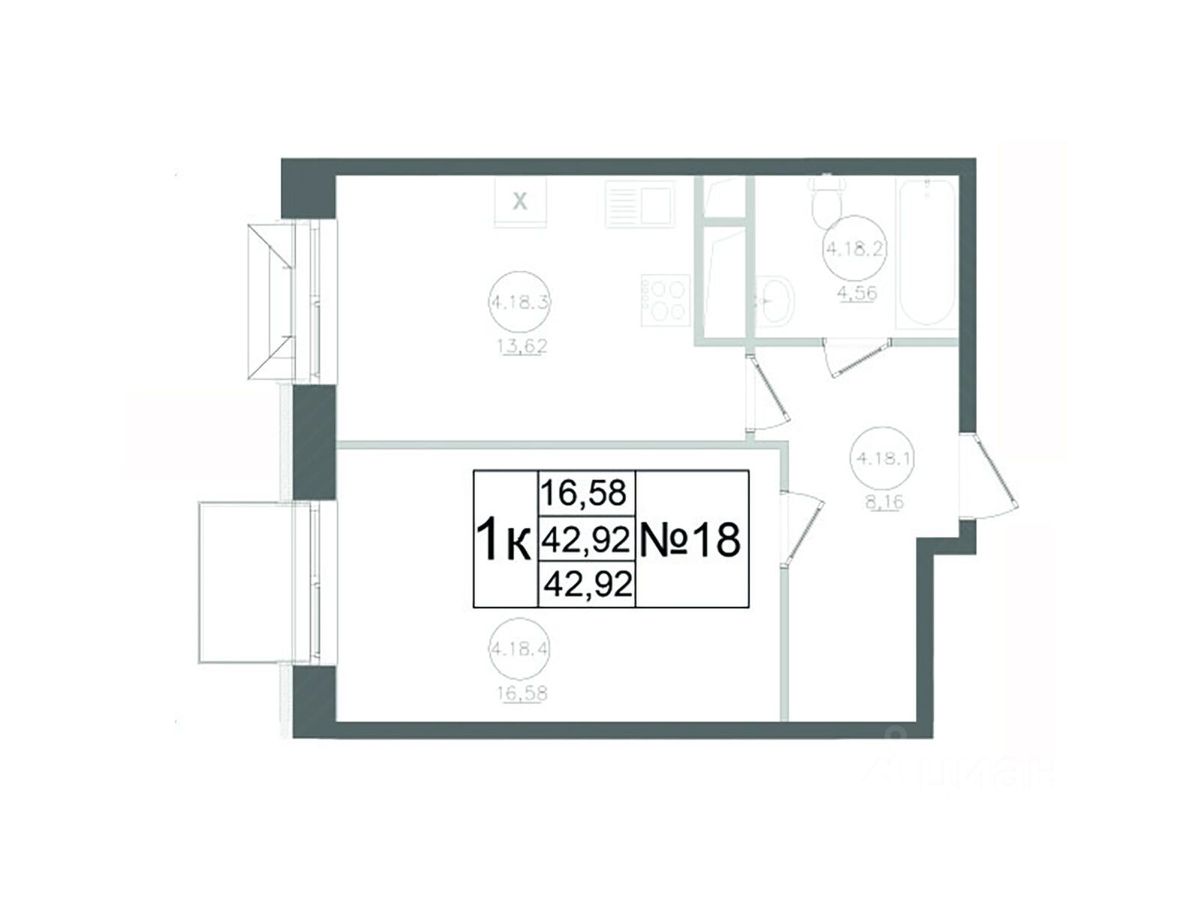Общая площадь42,92 м²