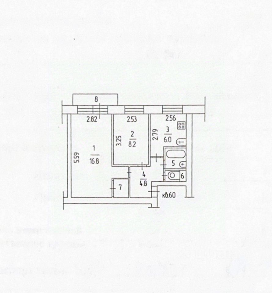Жилые комнаты: 16,8 кв.м. + 8,2 кв.м.
