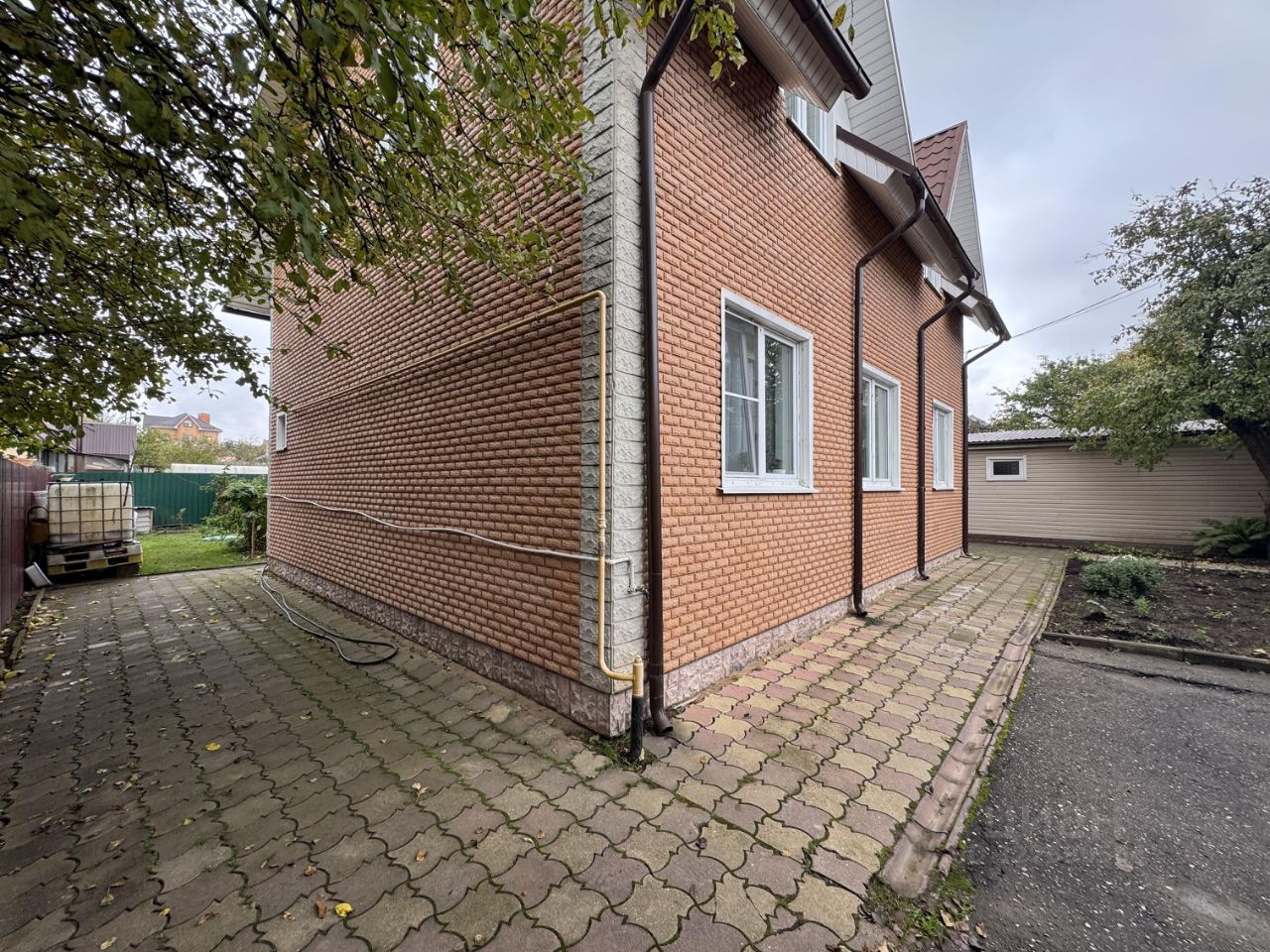 2-этажный жилой дом 170 кв.м., построен из пеноблоков, утеплен, обшит клинкерной плиткой.