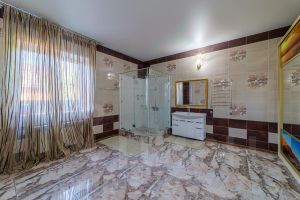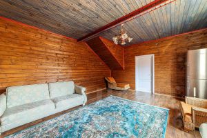 Гостевой дом: ленточный фундамент, стены брус 150 на 150 +утеплитель, перекрытия полностью застелены брусом 150 на 150, потолки 3 метра. 1 Этаж: кухня, столовая, комната, банная зона: парилка, бассейн, душевая. 2 этаж: свободной планировки. Дом полностью отапливается от системы отопления основного дома, все коммуникации в доме.